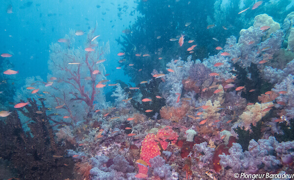 - Une dérivante le long d’un mur, beaux coraux, gros pélagiques possibles